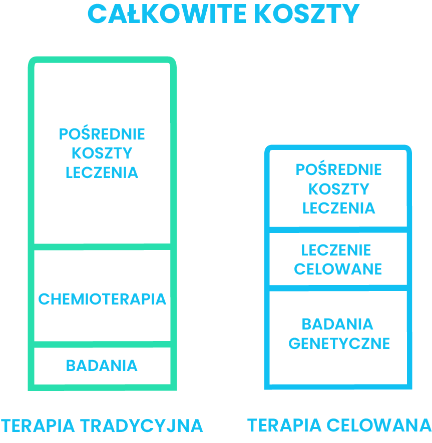 Niestety, funkcjonuje przekonanie, iż całościowe badania genetyczne są bardzo drogie. Leczenie celowane zmniejsza ryzyko działań niepożądanych i powikłań, dzięki czemu pacjenci rzadziej trafiają do szpitala. To obniża pośrednie koszty terapii. Medycyna personalizowana ogranicza także wydatki bezpośrednie. Lekarze stosują jedynie te leki, które działają na konkretny typ nowotworu i są dopasowane do profilu genetycznego pacjenta. Nie muszą dobierać terapii metodą prób i błędów. (Grzanka D., 2015).